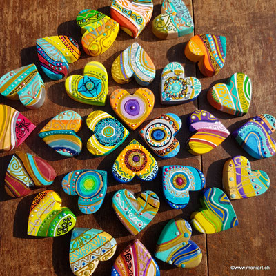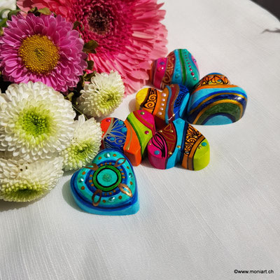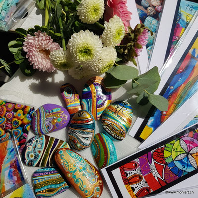 Es gibt wieder neue, kunstvoll bemalte Steine oder auf English Painted rocks in meinem Shop und im Atelier Laden in Rupperswil, Kanton Aargau.