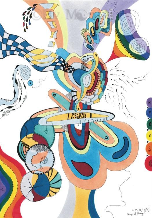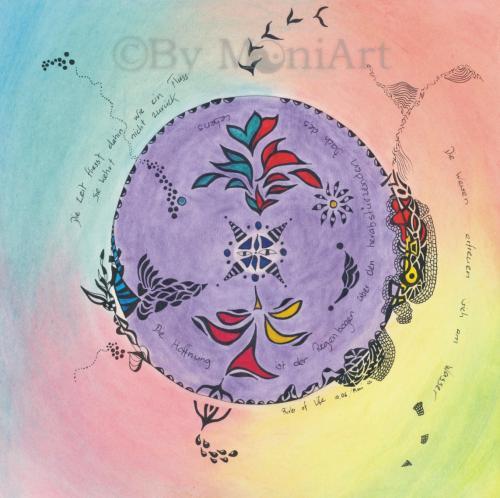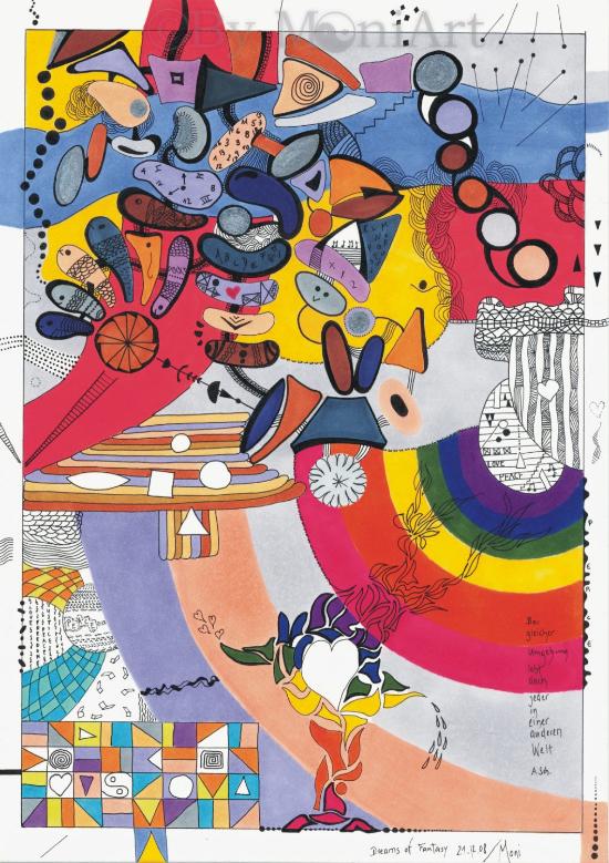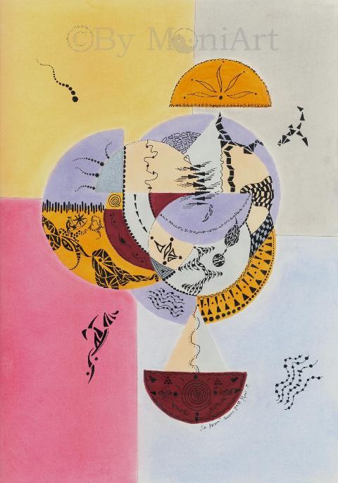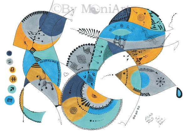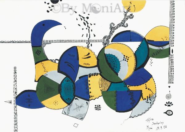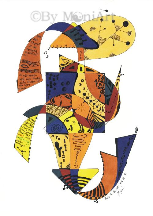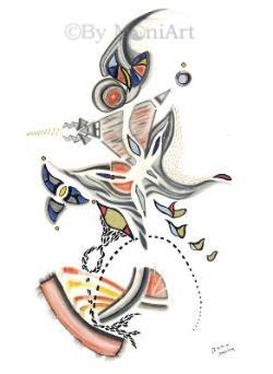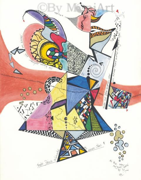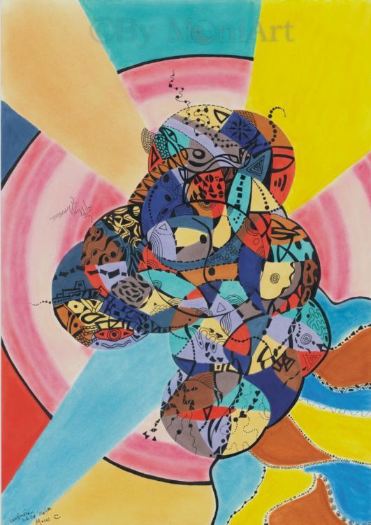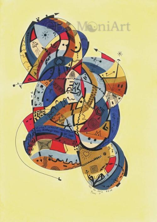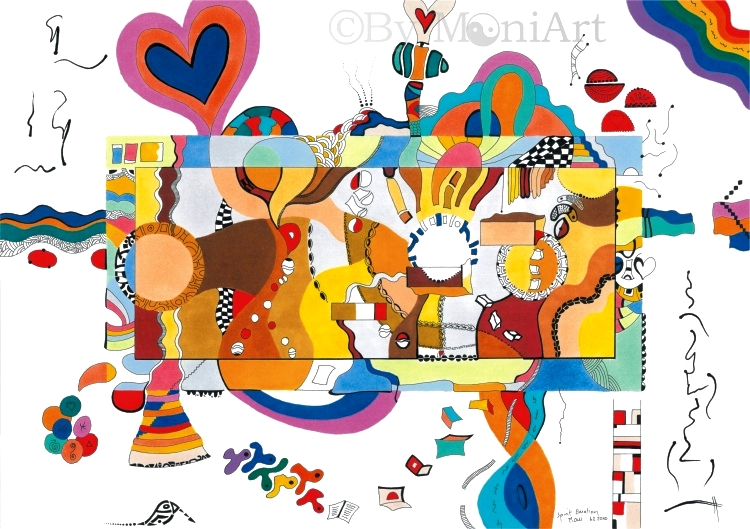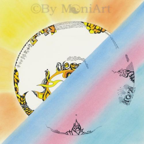 Tusche & Tinte Zeichnungen - Entstanden beim entdecken der grossen Welt. 1990 gab es weder E-Mail noch Natel. Ich habe viele Briefe um den ganzen Erdball geschickt. Es war ein gutes Gefühl, meine unvergesslichen Momente, Eindrücke, Erlebnisse und Begegnungen von meinen vielen Reisen Familie und Freunden mitzuteilen. Das war der Anfang von MoniArt, jeder Brief hatte neben der Adresse noch eine Zeichnung, ein Muster oder eine Verzierung. Für mich: Sprechen ohne Worte. 1995 habe ich dann das erste Bild auf eine Art Karton gezeichnet.
