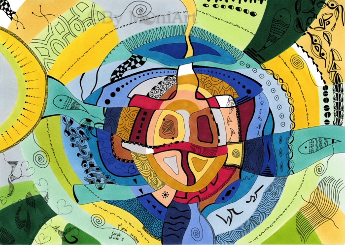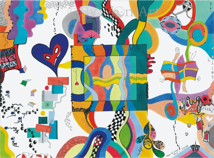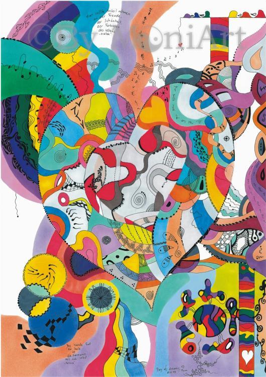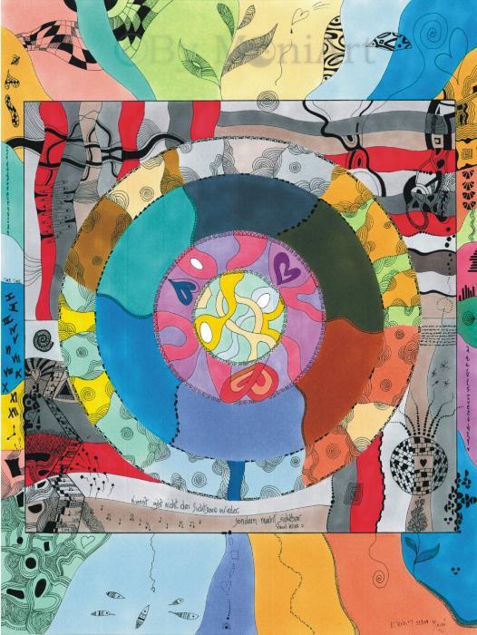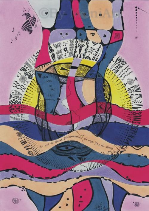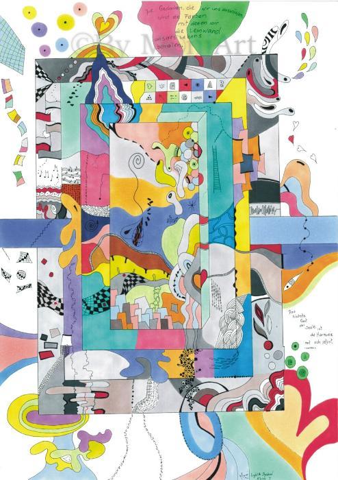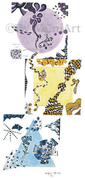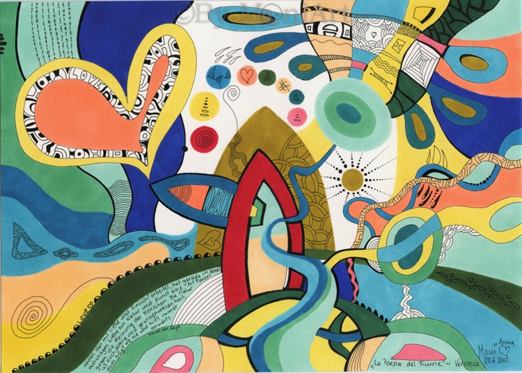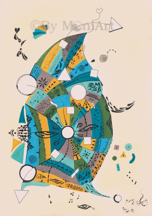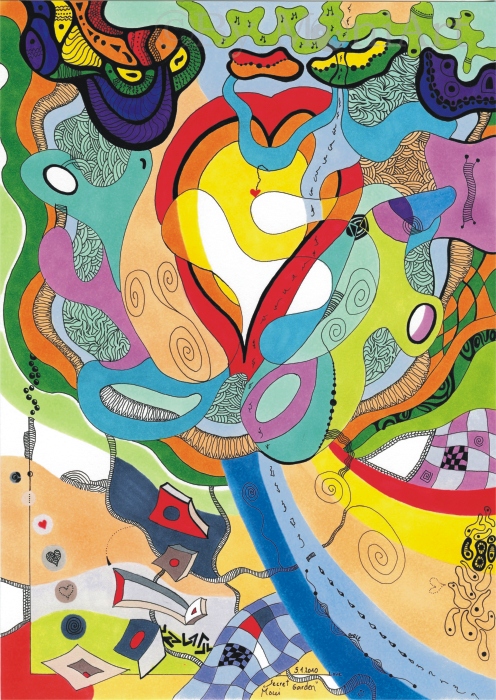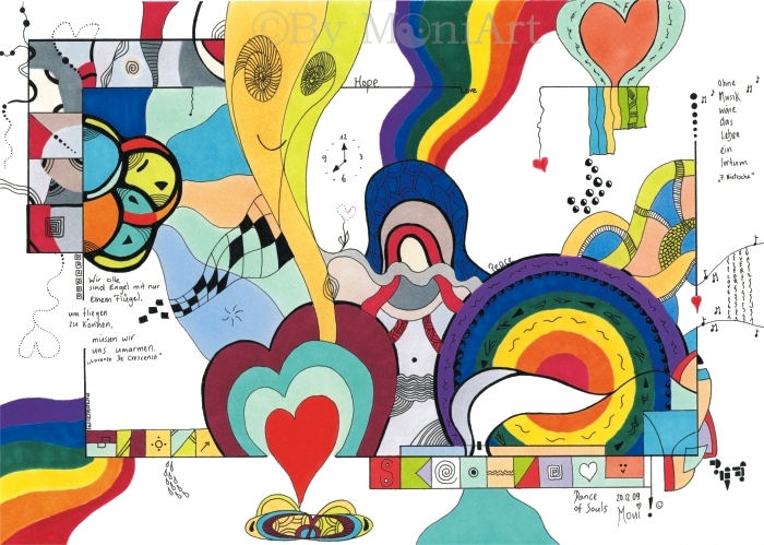 Tusche & Tinte Zeichnungen - Entstanden beim entdecken der grossen Welt. 1990 gab es weder E-Mail noch Natel. Ich habe viele Briefe um den ganzen Erdball geschickt. Es war ein gutes Gefühl, meine unvergesslichen Momente, Eindrücke, Erlebnisse und Begegnungen von meinen vielen Reisen Familie und Freunden mitzuteilen. Das war der Anfang von MoniArt, jeder Brief hatte neben der Adresse noch eine Zeichnung, ein Muster oder eine Verzierung. Für mich: Sprechen ohne Worte. 1995 habe ich dann das erste Bild auf eine Art Karton gezeichnet.