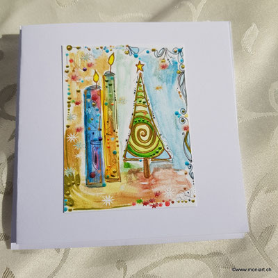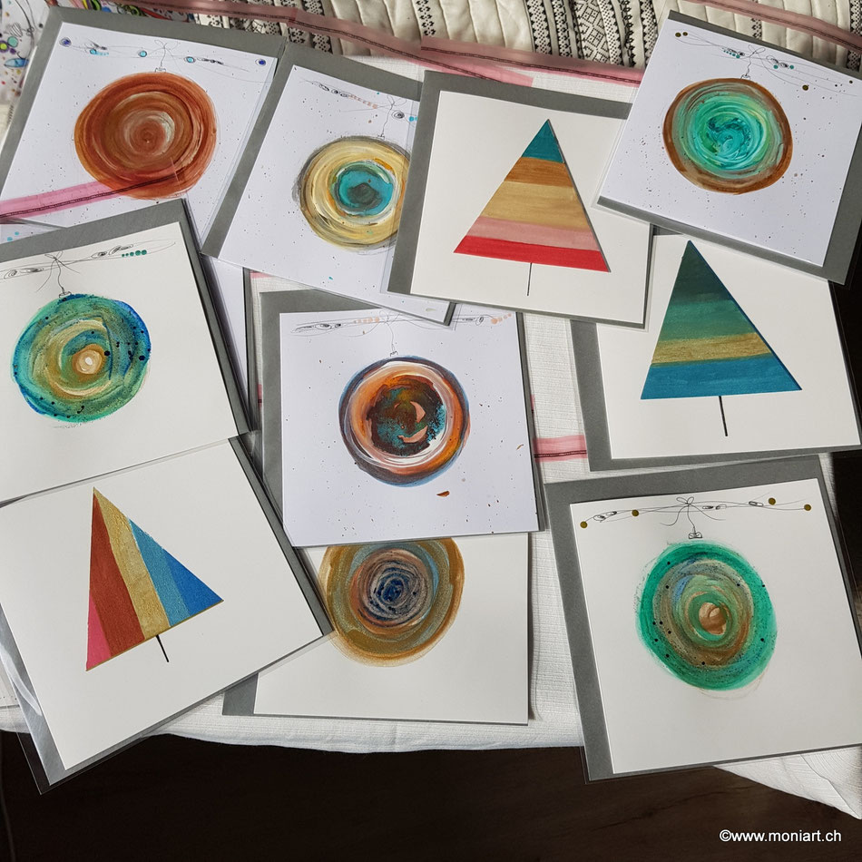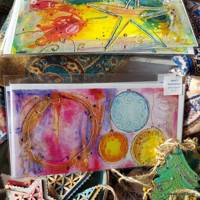 In meinem Shop ist eine vielseitige Auswahl an Weihnachtskarten. Der Preis ist je nach Motive 2.70 oder 3.-- inkl. Couvert. Fotos und Zeichnungen sind von mir. Jede Karte ist mit dem aktuellen Bestand versehen. Der Link ist hier: Online Shop