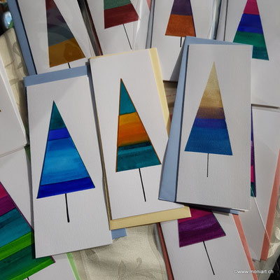 Es gibt fröhliche, bunte sowie auch einzigarte Naturbilder schöne und eine grosse Auswahl an selbst gezeichneten UNIKAT Karten. Die gedruckten Karten 20 x 9.5 cm mit Couvert sind für 2.70 oder für 3.-- zu haben. Es gibt diese dann nicht mehr.
